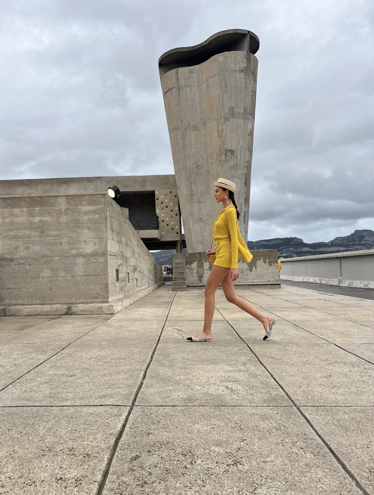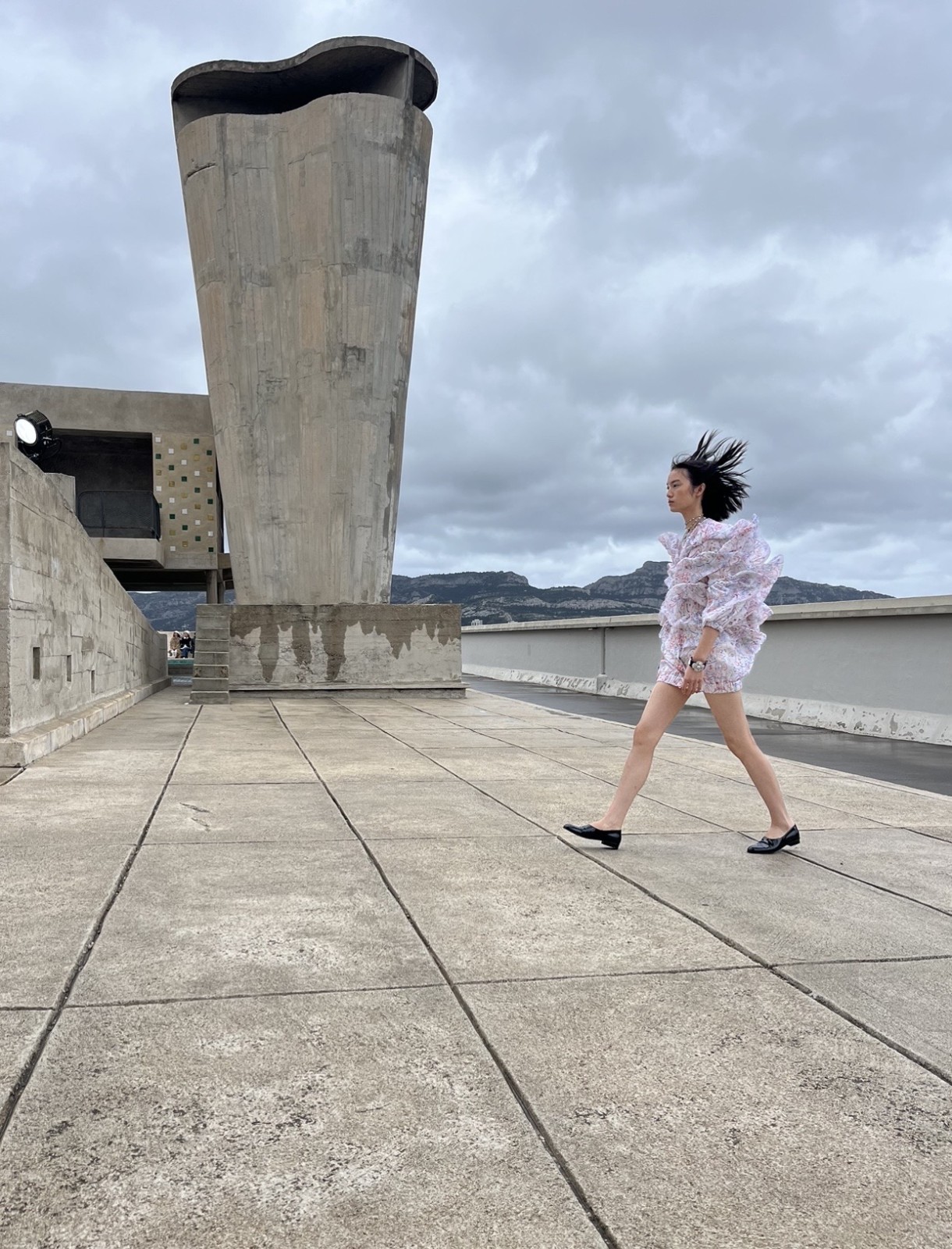 Lieu emblématique, icône architecturale du brutalisme, classé Patrimoine Mondiale de L’Unesco pour abriter habitants, commerçants et et espaces collectifs. Construite par le célèbre architecte Le Corbusier entre 1947 et 1952, œuvre d’art en soi, incarnant la fonctionnalité et l’esthétique avec ses lignes épurées et son architecture avant-gardiste, la Cité Radieuse offre un cadre parfait pour Chanel, créant un dialogue entre la mode et l’architecture moderne.