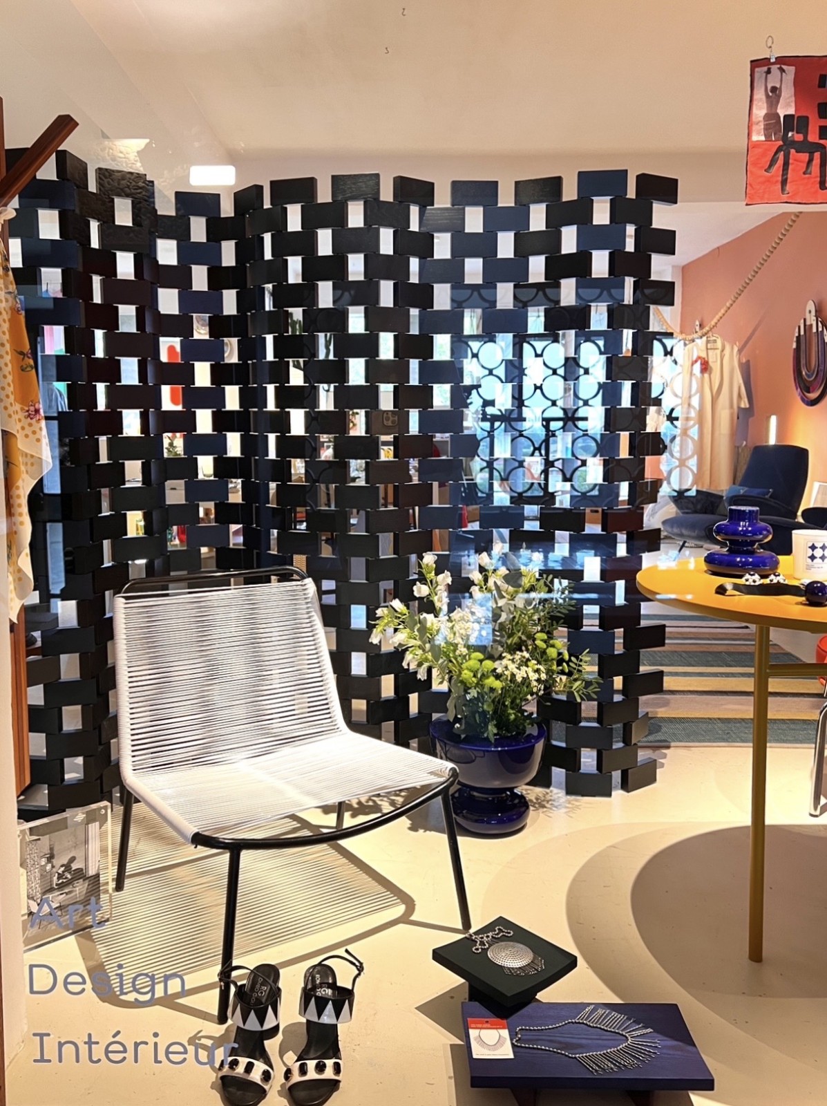 Maison Mirbel, dévoile les collages textiles de l’artiste brésilienne Luca Schiller en accord avec le paravent Ambassade de Charlotte Perriand.