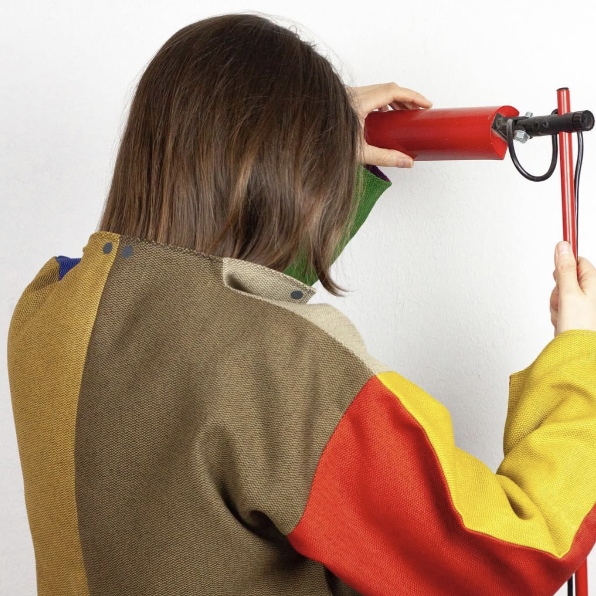 Sybille utilise ces échantillons pour faire des pièces uniques de prêt-à-porter et des objets textiles sur mesure (tentures, coussins, vestes, gilets, matelas, pouffs). Considérant que le réemploi est une nécessité face à la surconsommation et à la crise écologique. Le projet propose une économie de la matière déjà transformée, exploitée. De futurs déchets manufacturés, portant leur trace énergétique, les nuanciers deviennent une nouvelle ressource et par là transmettent une trace de culture.