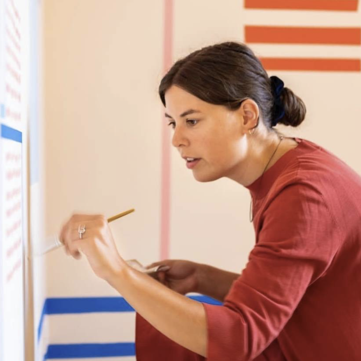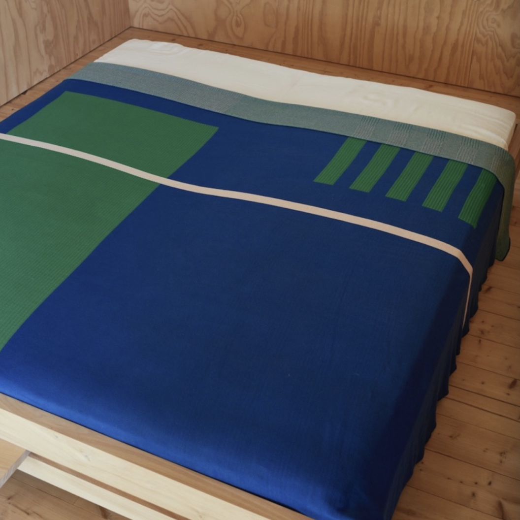 A travers ces projets, Léda recherche un équilibre innovant émergeant des combinaisons de couleurs et compositions de lignes abstraites des dessins et collages utilisés. Ces derniers sont ensuite soigneusement traduits en textiles et prennent la forme de pièces prêtes à l’emploi, comme les plaids rayés en coton tricotés en Belgique, ou encore de tapis tuftés réalisés au Portugal.