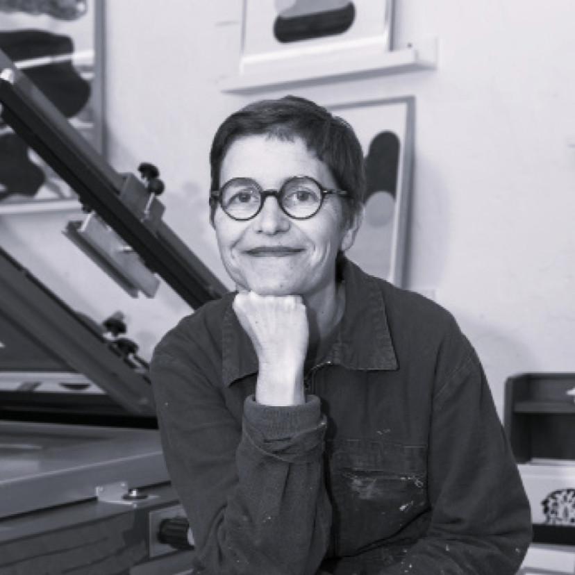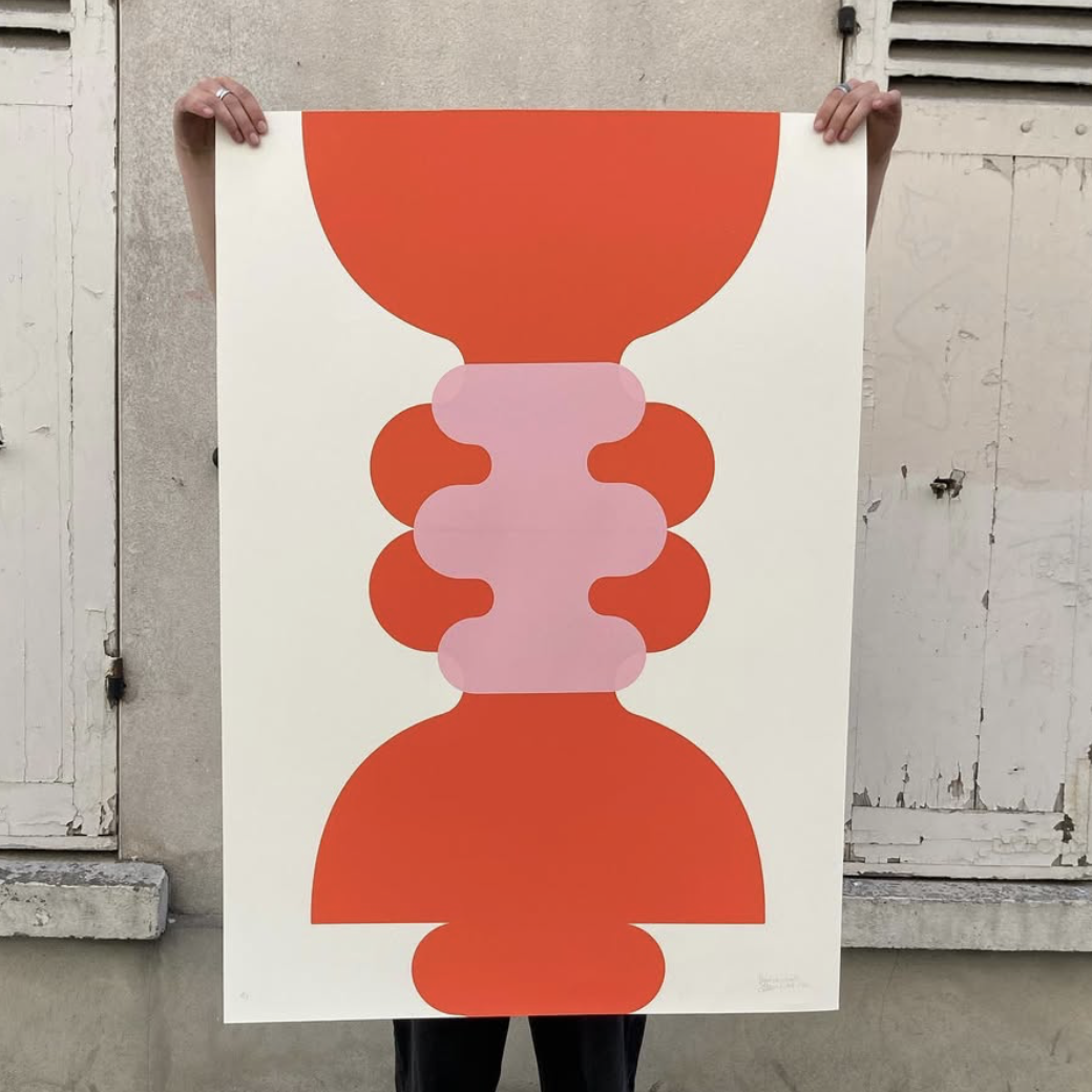 Toutes ses créations graphiques sont imprimées en sérigraphie dans son atelier à Paris dans le quartier de Montmartre.