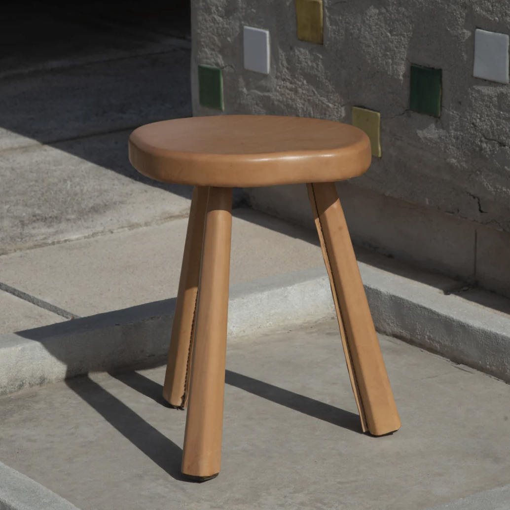 Nos tabourets dont la forme en bois nous rappelle celle des Artisans de Marolles (années 50) ont été entièrement gainés de cuir par un sellier habitant La Cité Radieuse de Marseille.