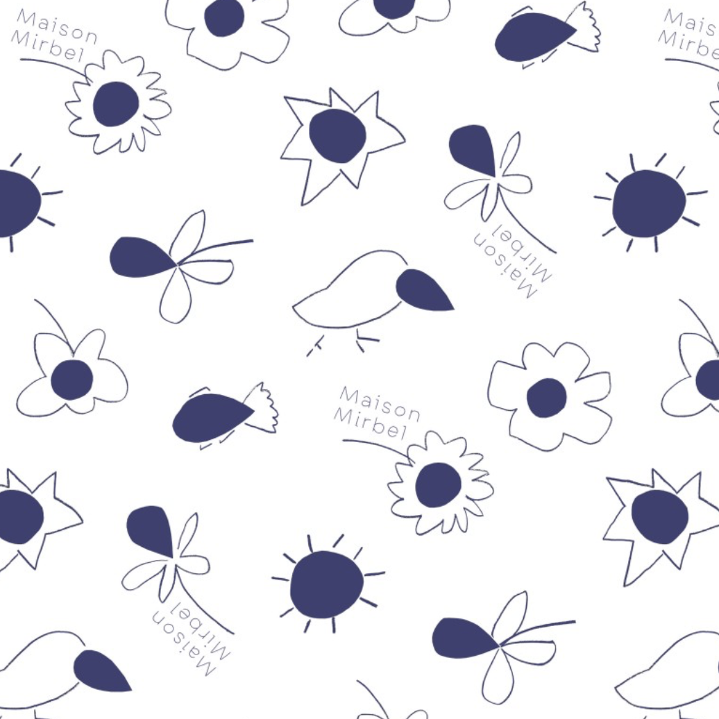 Clara a réalisé notre signalétique XXL au Corbusier ainsi que des motifs pour notre papier de soie Maison Mirbel.