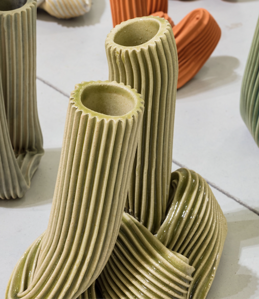 La technique utilisée par le duo représente une autre récurrence. Toute leur production est issue de l’extrusion de terre, processus emprunté à l’industrie qui représente le chainon entre les deux savoir-faire de Charlotte et Martin. Lorsque la céramique rencontre le design, lorsque l’art rencontre l’industrie…